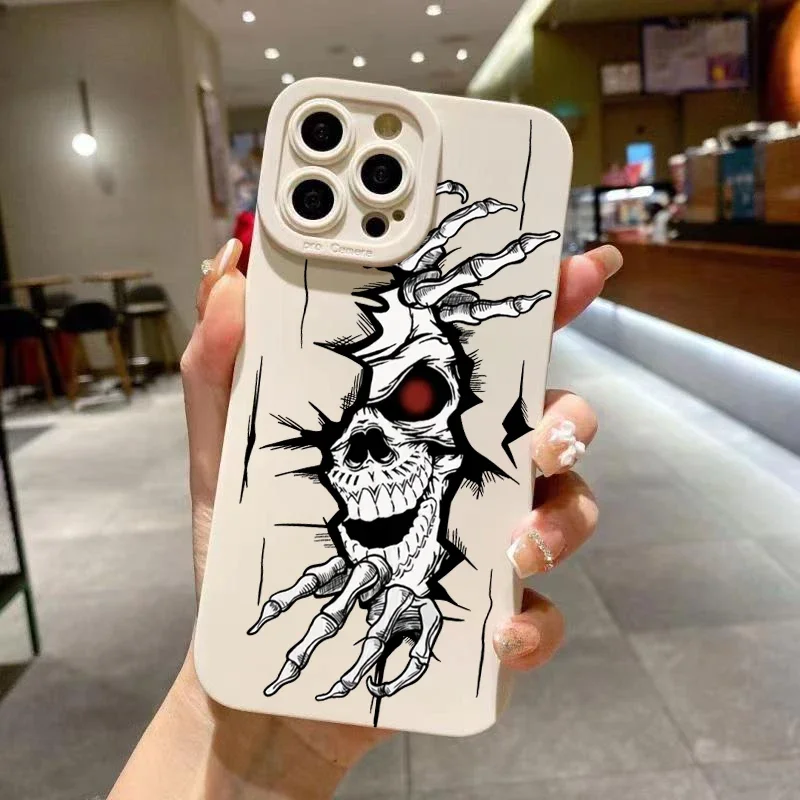 Black Skull Phone Case For iPhone 15 Cases iPhone 14 13 12 11 Pro Max Mini XS Max XR X 7 8 Plus SE2022 Matte Soft Silicone Cover