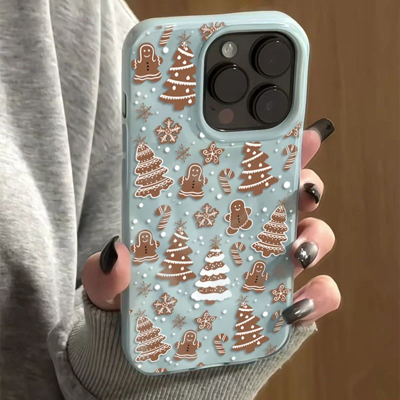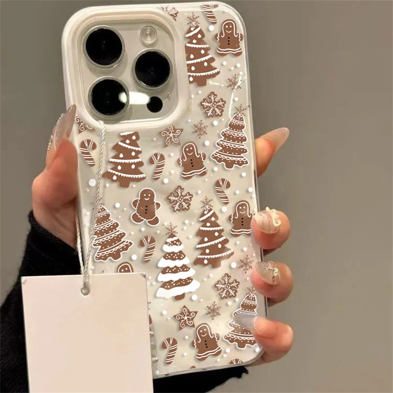 Cartoon Christmas Tree Snowman Phone Case For iPhone 17 16 15 14 Plus 13 12 11 Pro Max 16 Plus Shockproof Folds Texture Cover