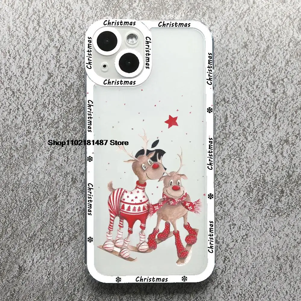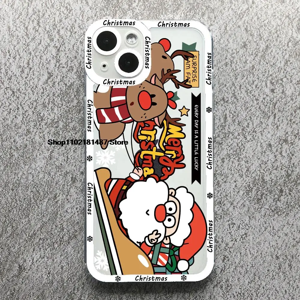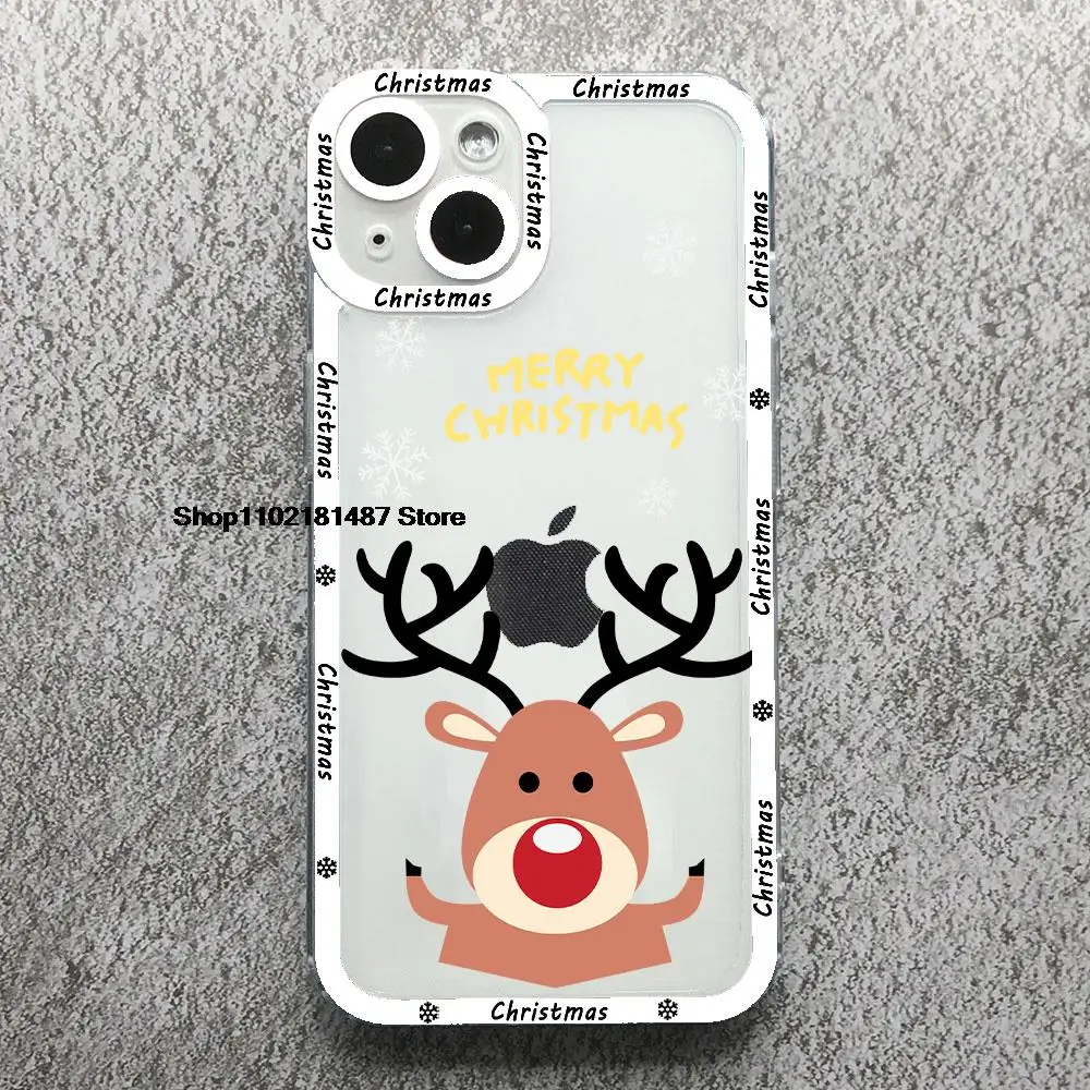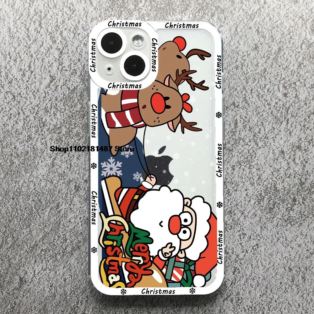 Cartoon New Year Christmas Phone Case For iPhone 13 12 11 14 15 16 17 Pro Max 16Plus 17AIR Cute elk santa Clear Soft bumper Case