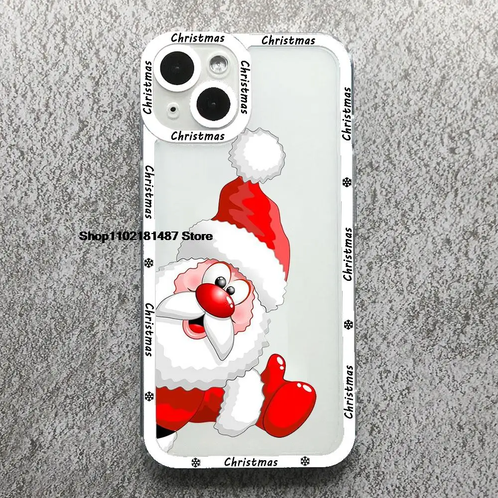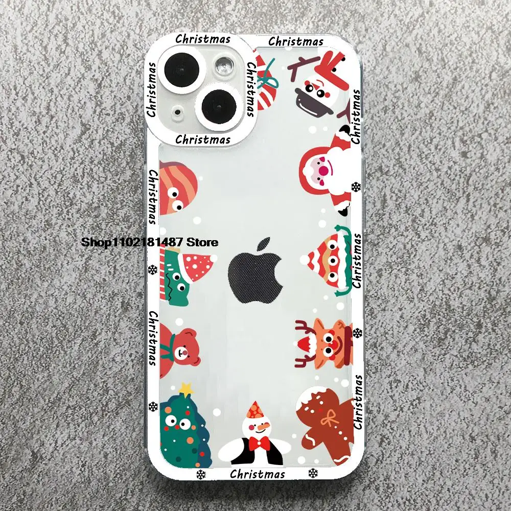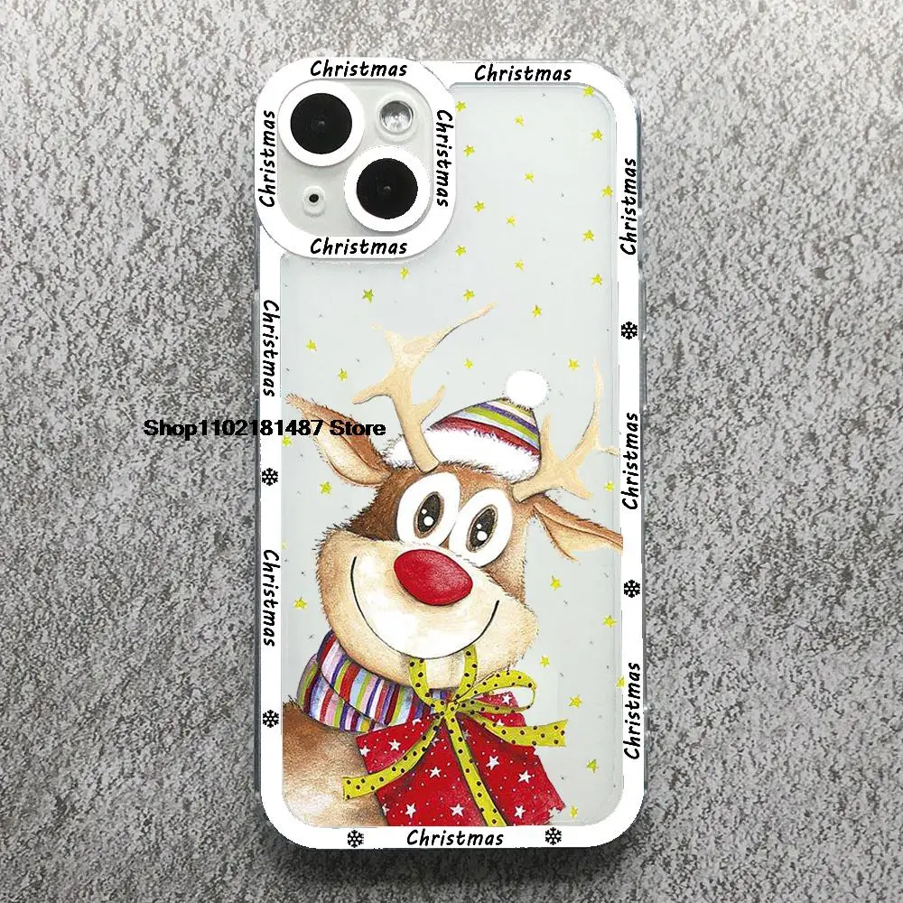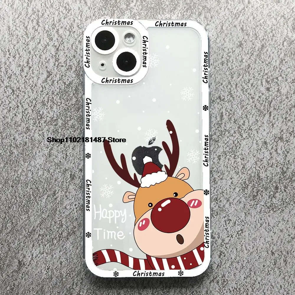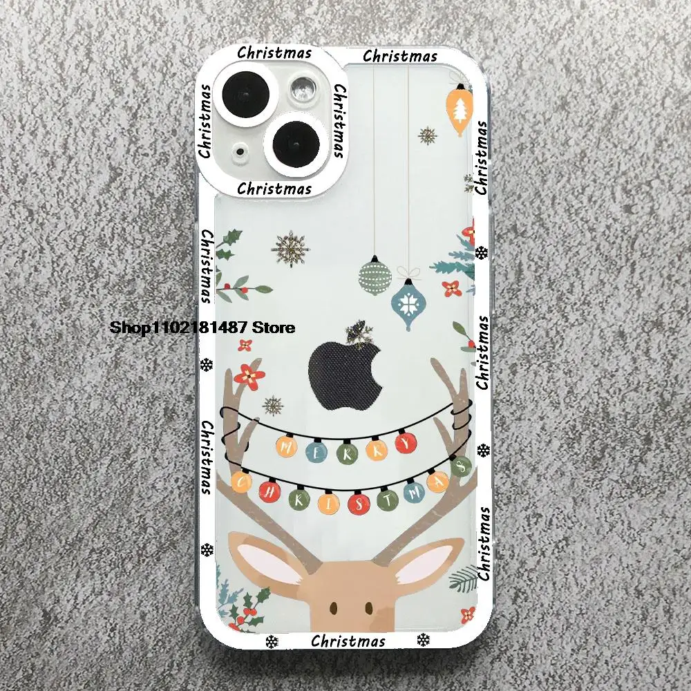 Cartoon New Year Christmas Phone Case For iPhone 13 12 11 14 15 16 17 Pro Max 16Plus 17AIR Cute elk santa Clear Soft bumper Case