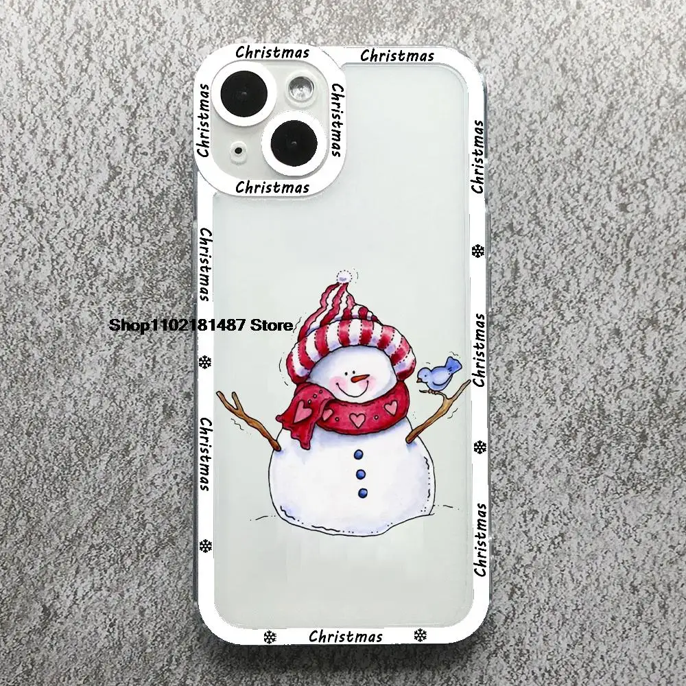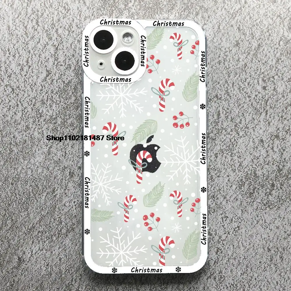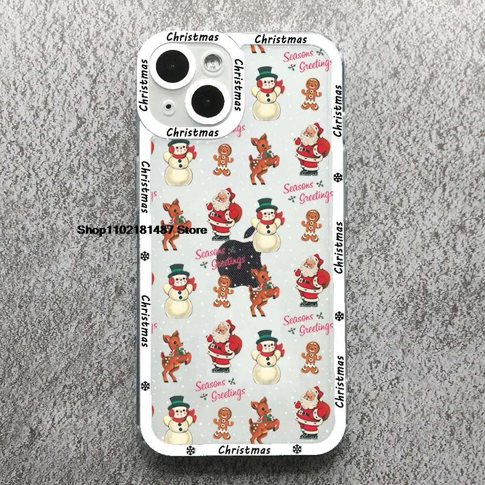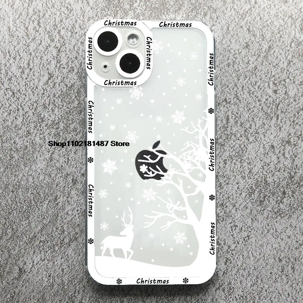 Cartoon New Year Christmas Phone Case For iPhone 13 12 11 14 15 16 17 Pro Max 16Plus 17AIR Cute elk santa Clear Soft bumper Case