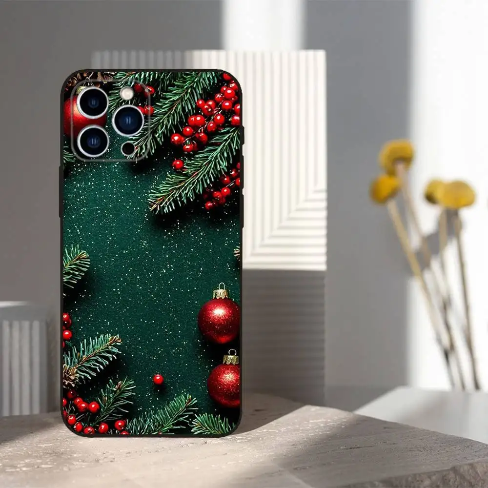 Christmas Art Decorations Phone Case For iPhone 16,15,14,13,12,11 Plus,Pro Max,XS,X,XR,SE,Mini,8,7,Soft Silicone Black Cover
