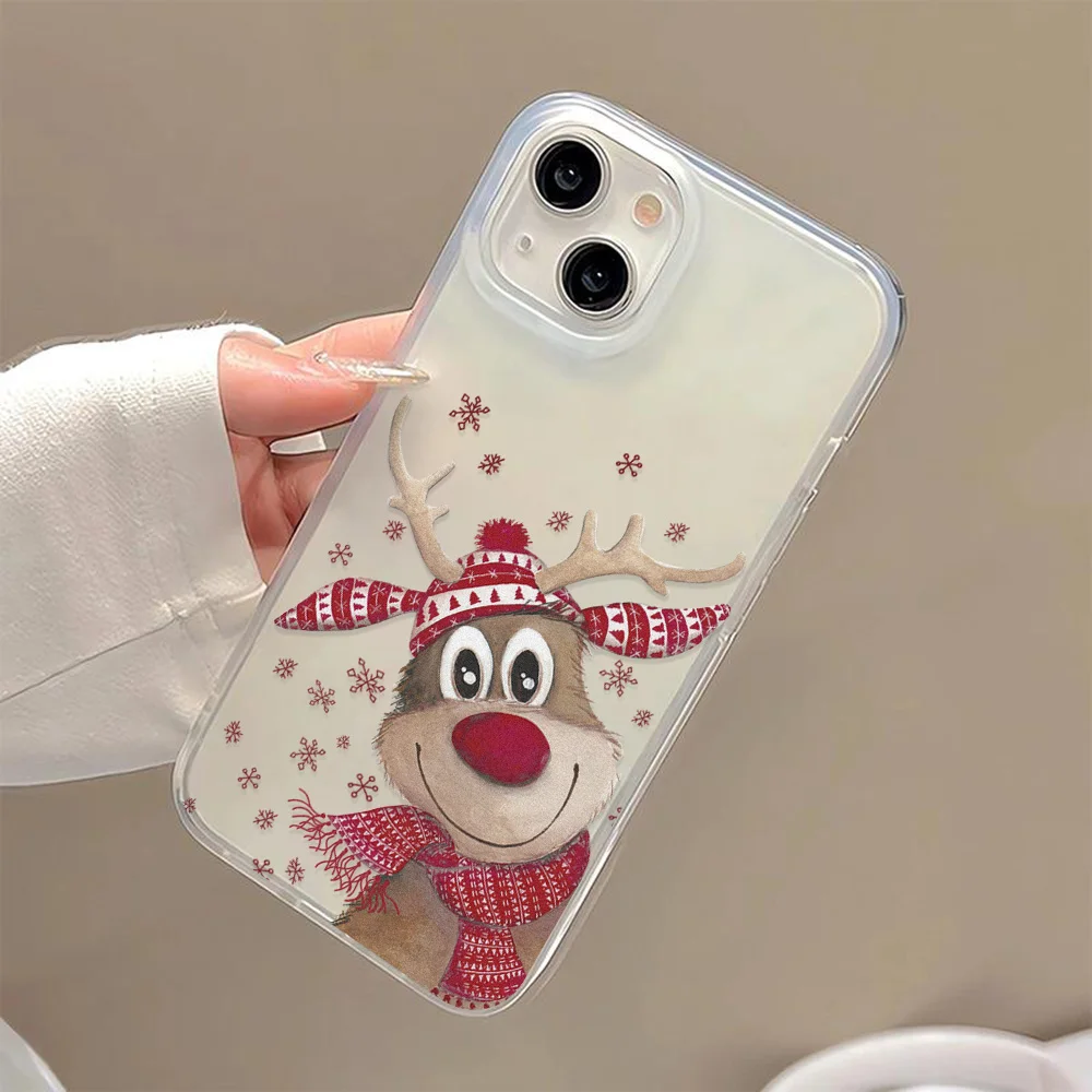 Christmas Cartoon Cute Phone Case For iPhone 11 Case iPhone 13 12 14 15 16 Pro Max Plus 12 13Mini Shockproof Soft Silicone Cover