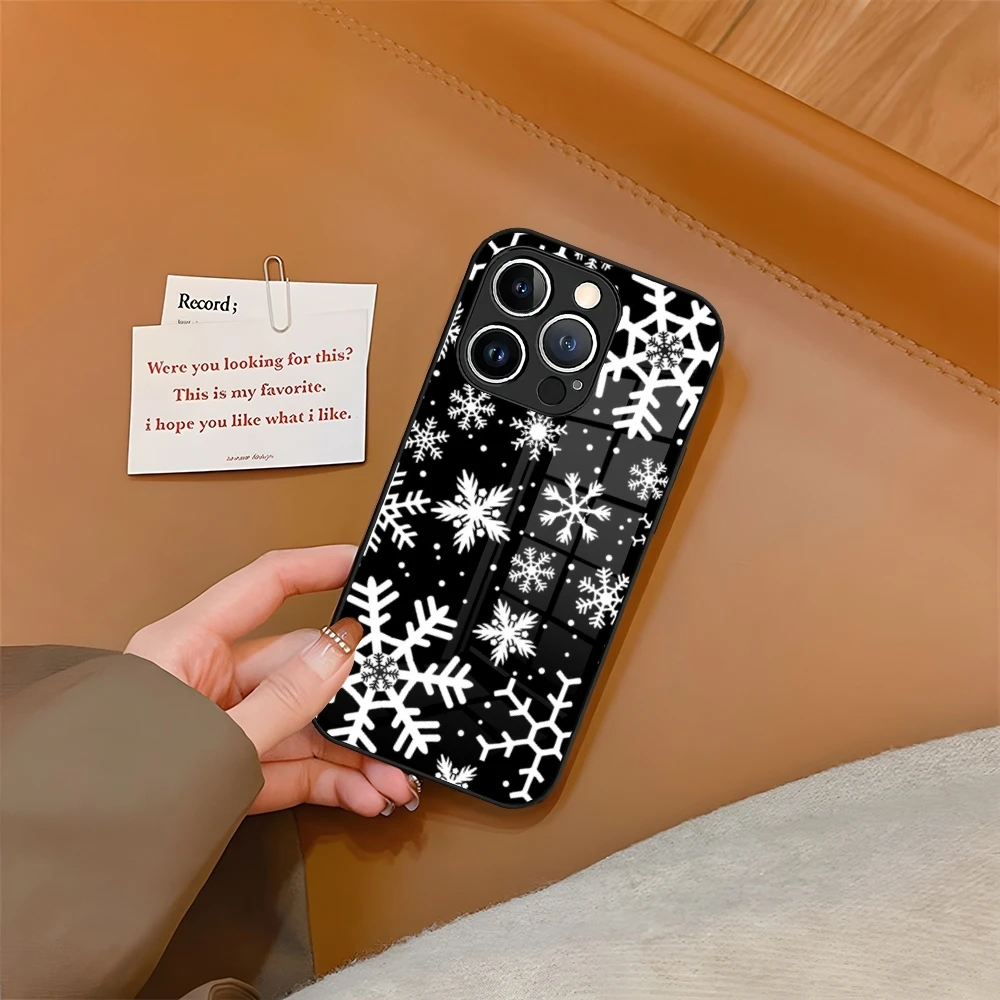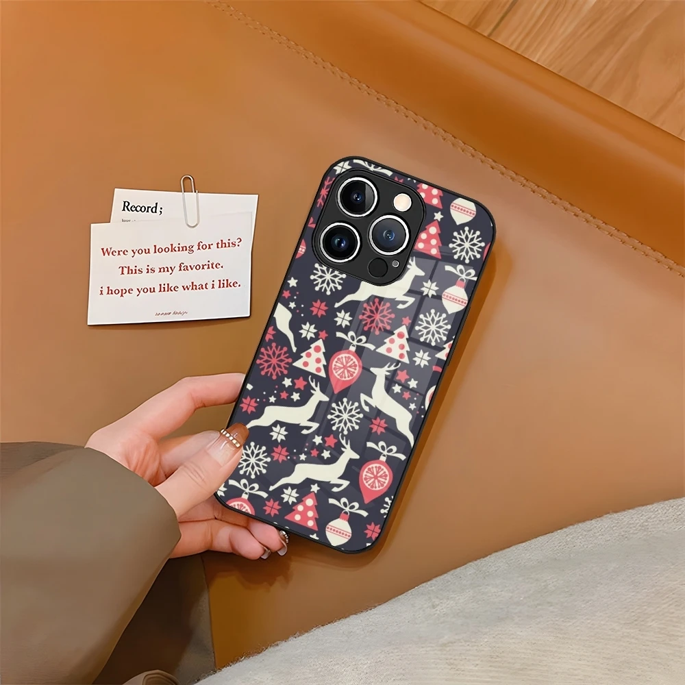 Christmas Phone Case Tempered Glass For iPhone 16 15 13 14 12 11 Pro XS Max Plus Mini SE2020 Coque