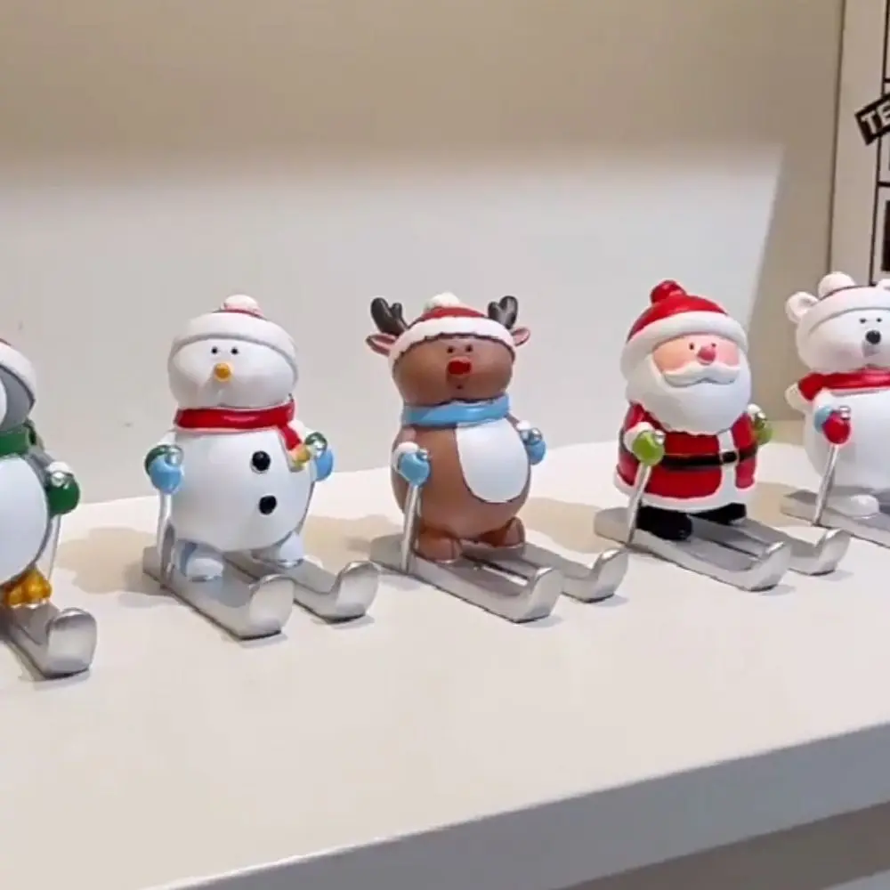 Christmas Style Santa Claus Phone Holder Cartoon Snowman/Penguin/Elk Phone Stand Resin Simulation Phone Support Home Desk