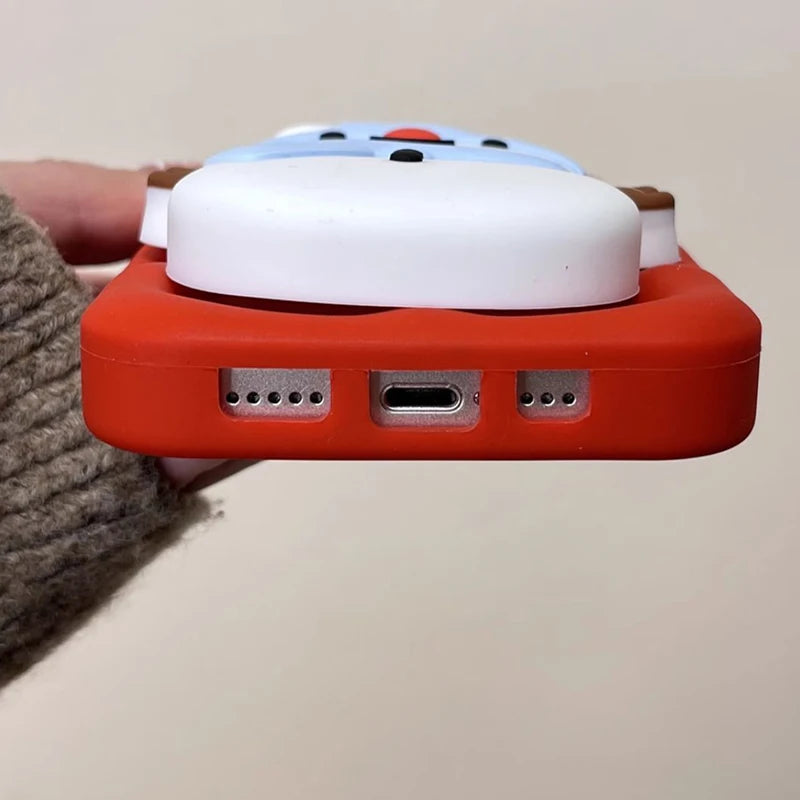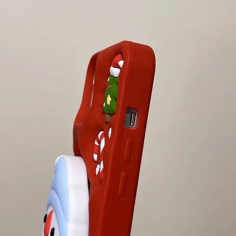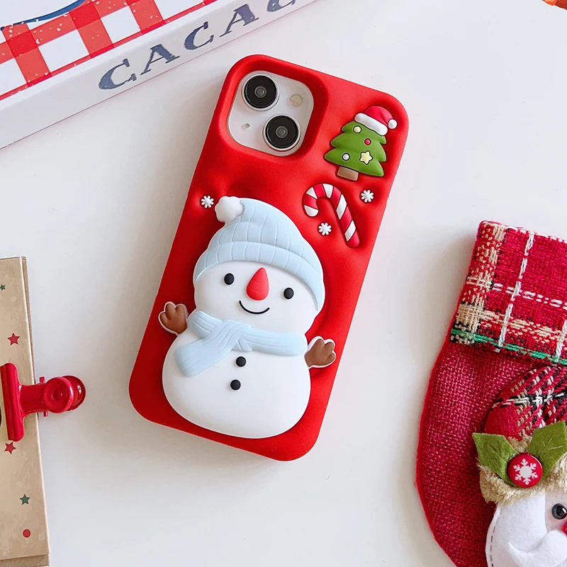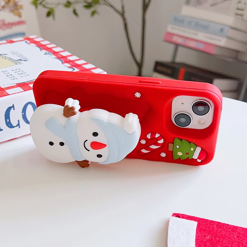 Christmas Tree Cute 3D Snowman Holder Stand Phone Case For iPhone 17 Pro Max 16 15 14 13 Air Shockproof Soft Silicone Back Cover