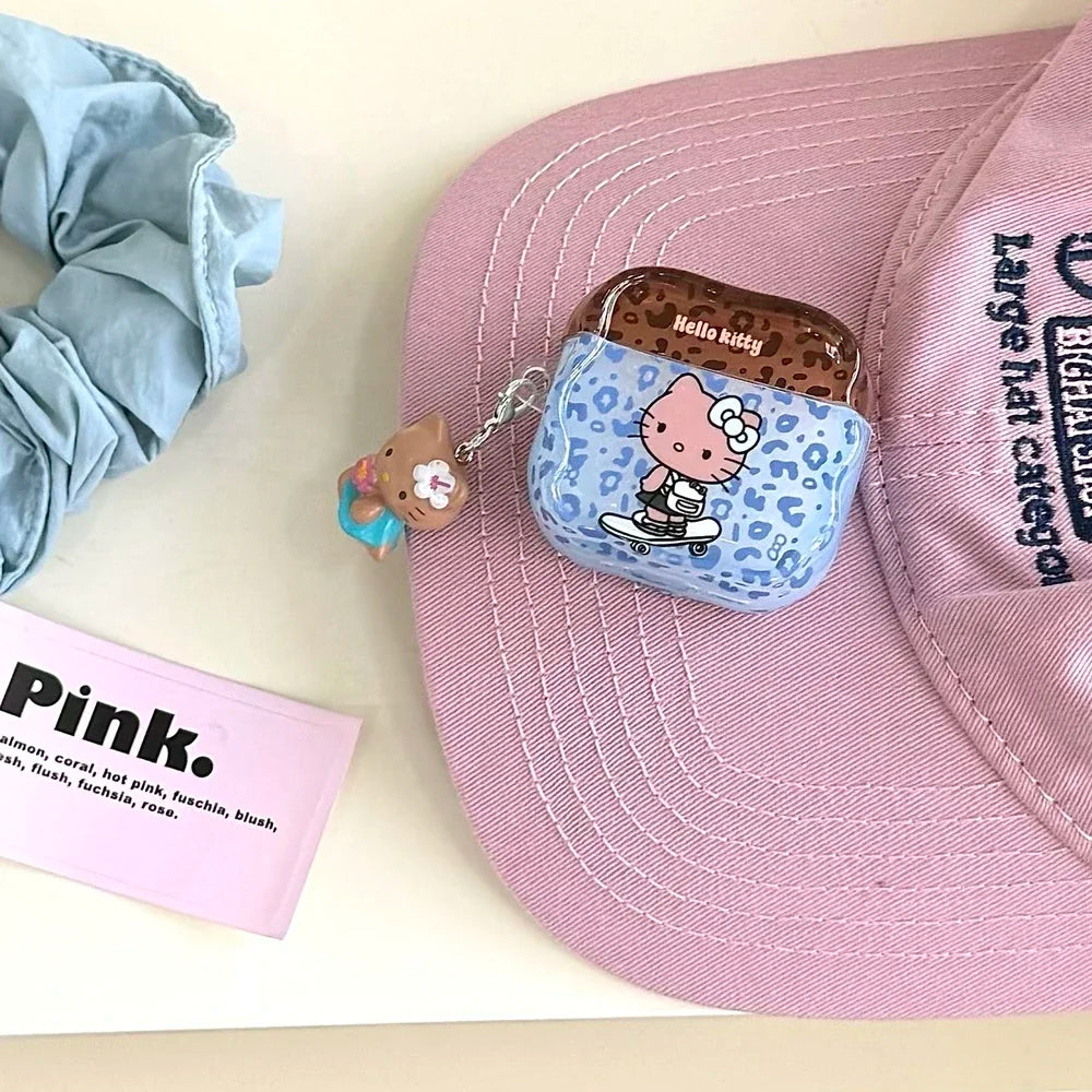 Earphone Case For Airpods 1 2 3 4 Pro 2 Cute Sanrio Hello Kitty leopard Print Wireless Bluetooth Headset Protective Soft Cover