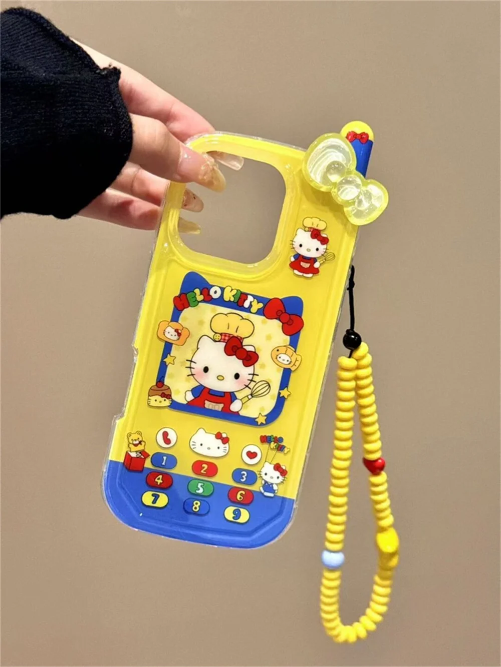 ins Cute Hello Kitty Bow Telephone Phone Case For iPhone 16 15 14 13 Pro Max Shockproof Bumper Protective Back Cover 3D Fundas