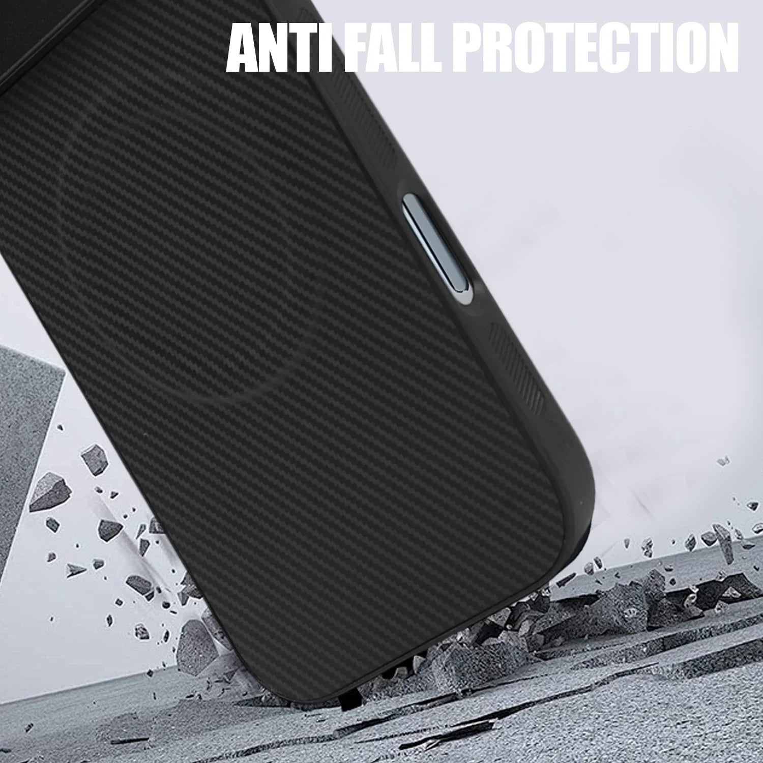 Category: For iPhone 17 Pro Max Phone Case, Carbon Fiber Textured Magnetic Soft Case with Leather Texture, Magnetic Wireless Charging