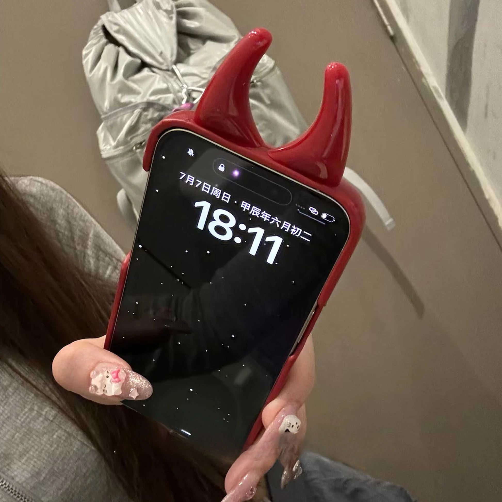 Soft Cute 3D Phone Case for IPhone15 14 13 12ProMax Anti-drop Patent Leather Down Three-dimensional Horn Shockproof Cover Cases